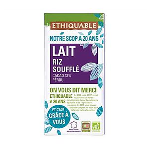 Chocolat lait riz soufflé - bio - tablette 100g (Ethiquable)